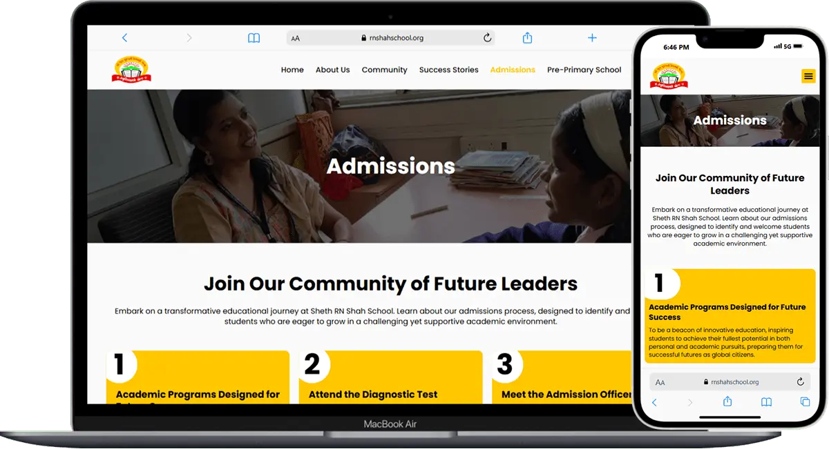 R. N. Shah School, a well-regarded educational institution, sought to modernize its online presence to better serve its community of students, parents, and staff. The goal was to create a comprehensive and accessible website that would not only showcase the school’s values and achievements but also serve as a centralized source for important information.