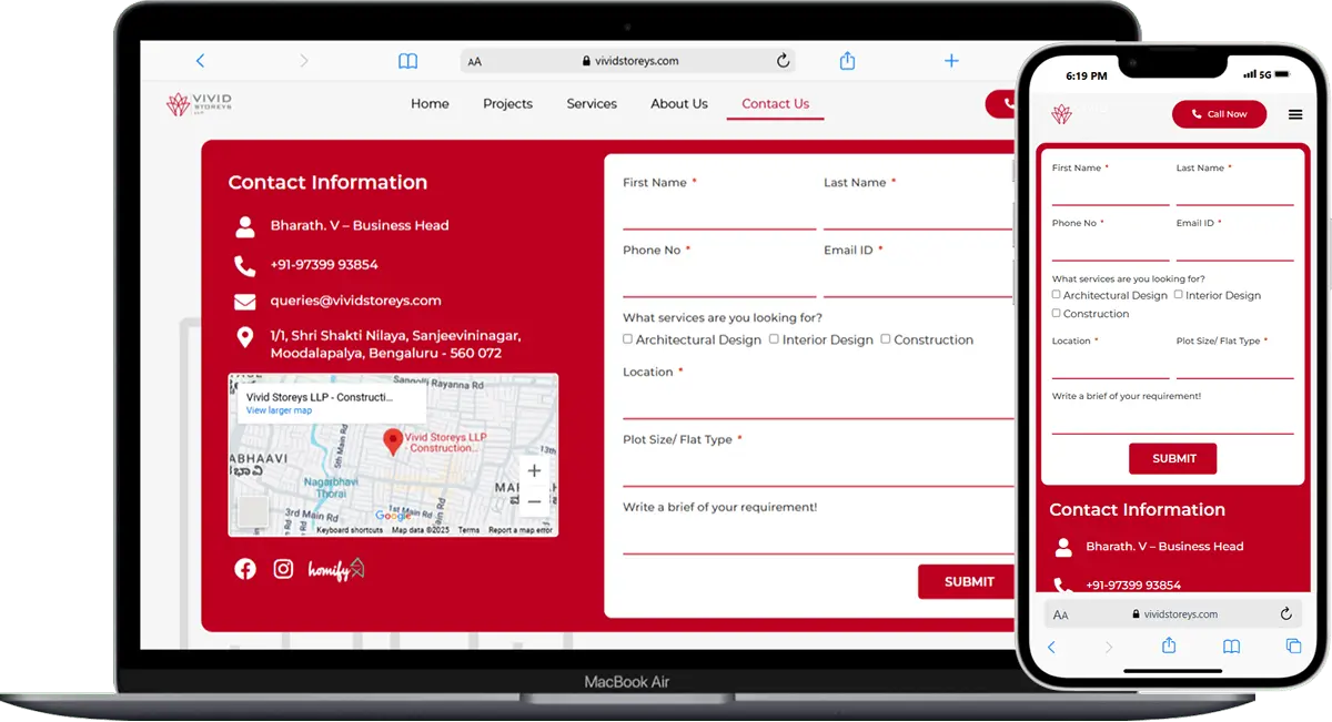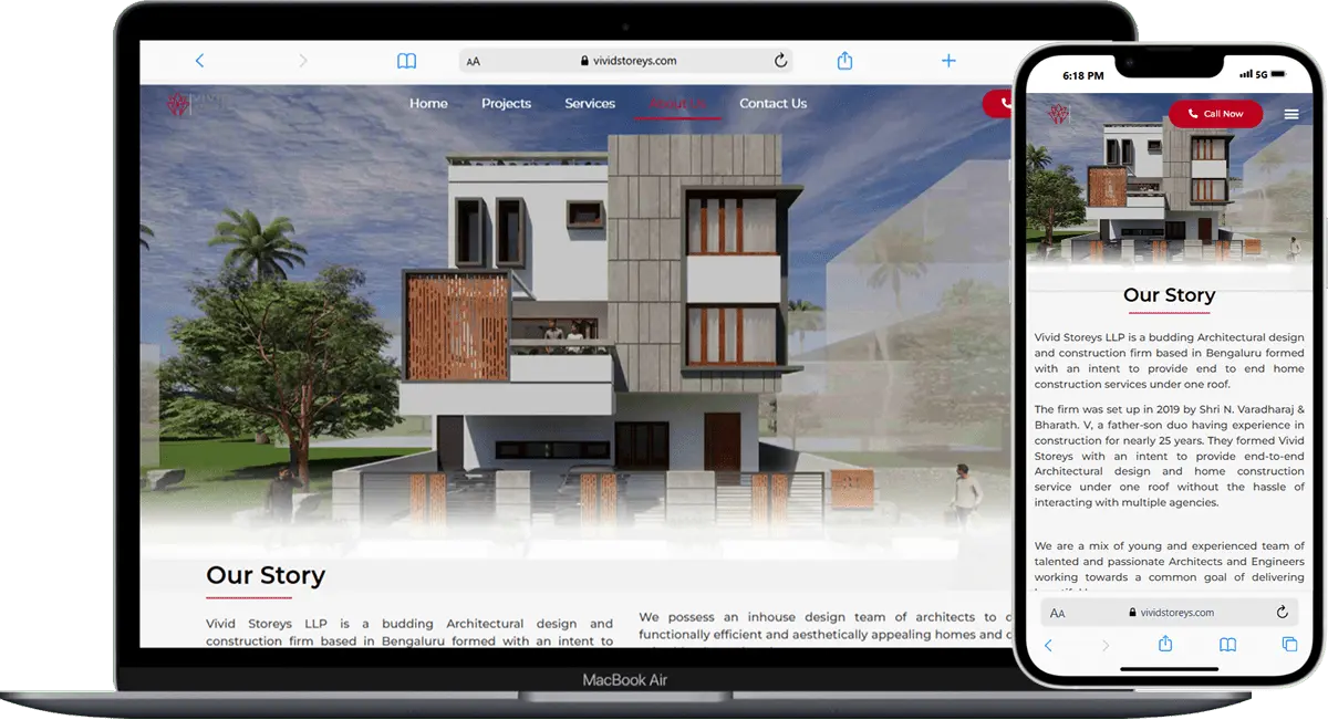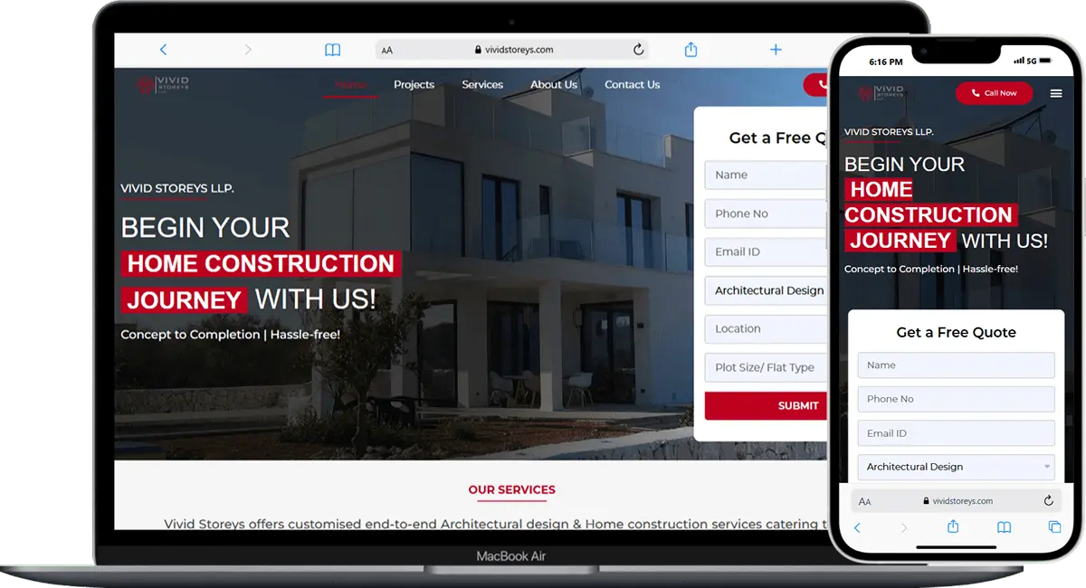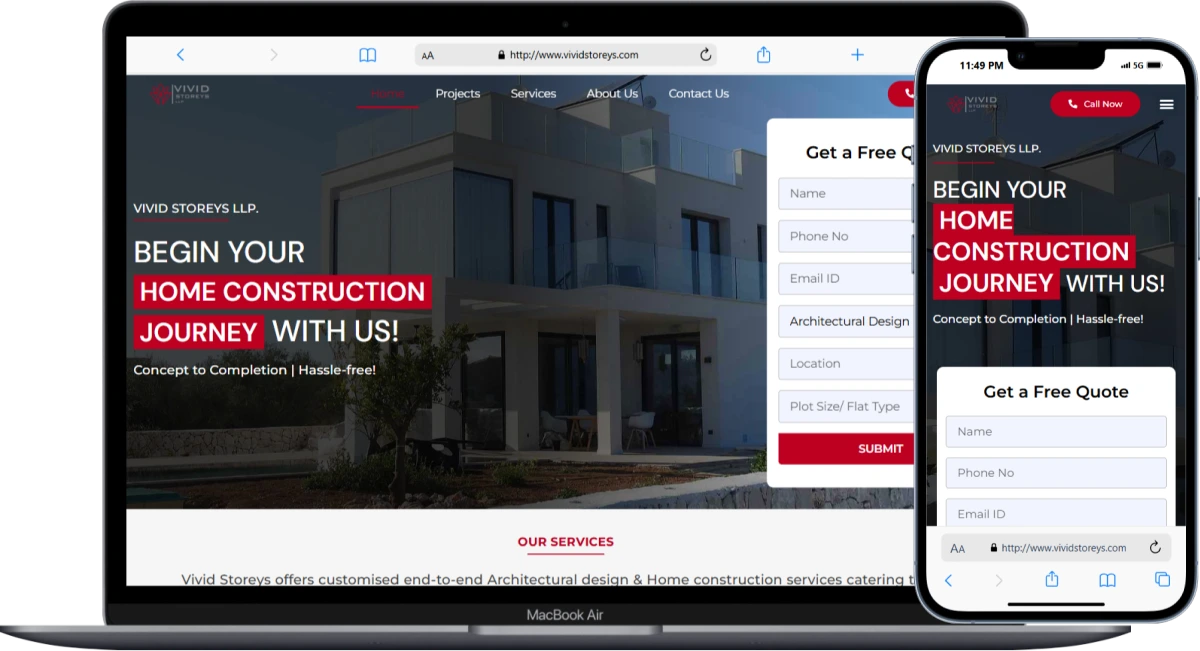 VIVID Storeys LLP faced the challenge of effectively presenting their real estate projects and expertise to a wider audience. Their previous website lacked an engaging design, making it difficult for potential clients to explore their properties and understand the full scope of their offerings. Additionally, the site was not optimized for mobile, resulting in poor user experience and lower engagement. The goal was to create a visually appealing, responsive platform that showcased their portfolio, improved navigation, and increased lead generation.